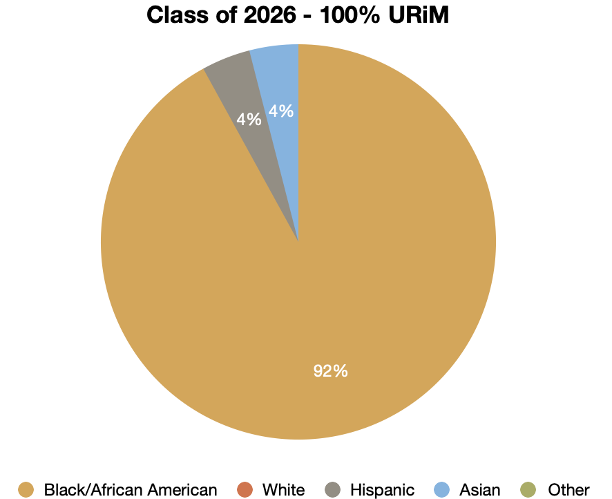 Benchmarks: ≥85% of matriculated students are from URiM groups.